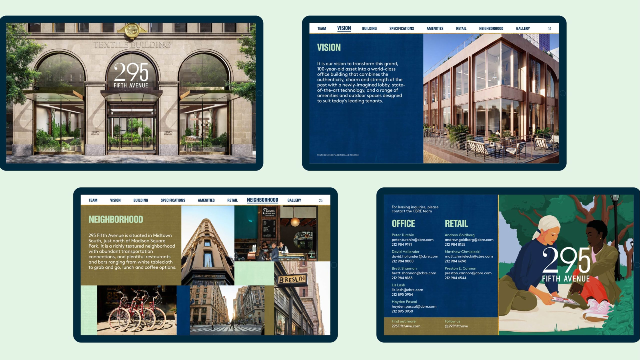 Our brand reflects the diversity of different tenant types who will come together in this building and uses a light-hearted, bright color palette and illustrations to connote the playground aspect of the brand, while the hardworking aspect comes through the typefaces, layouts and detailed renderings and film.