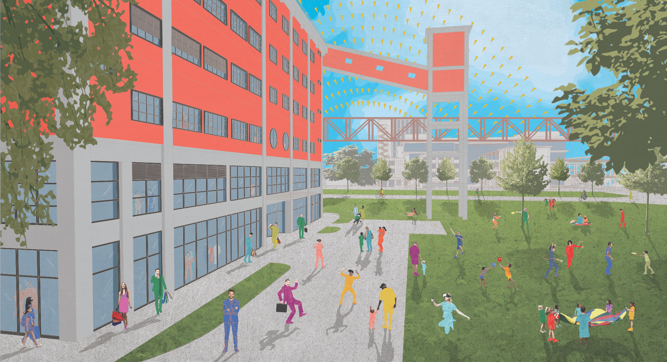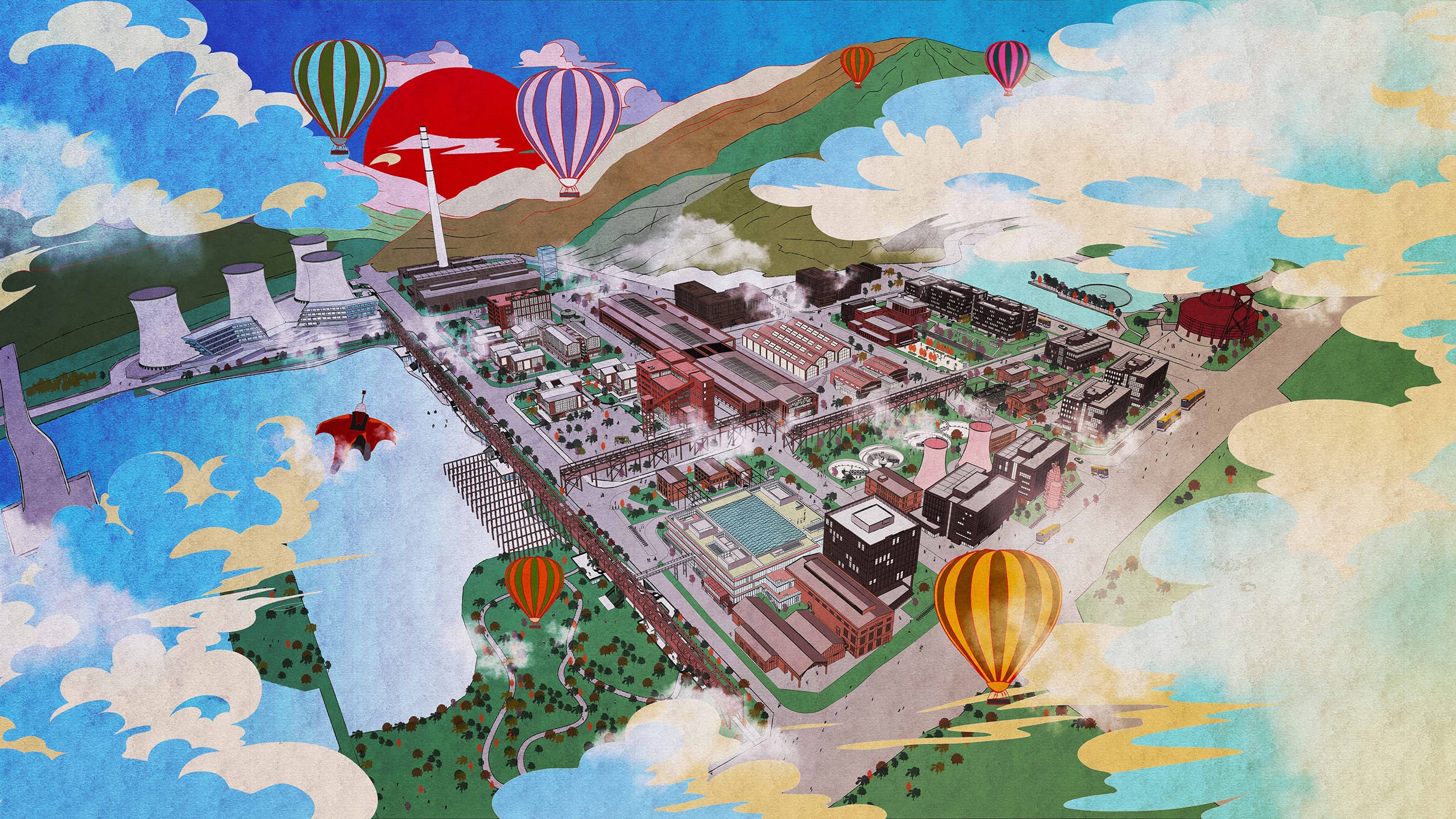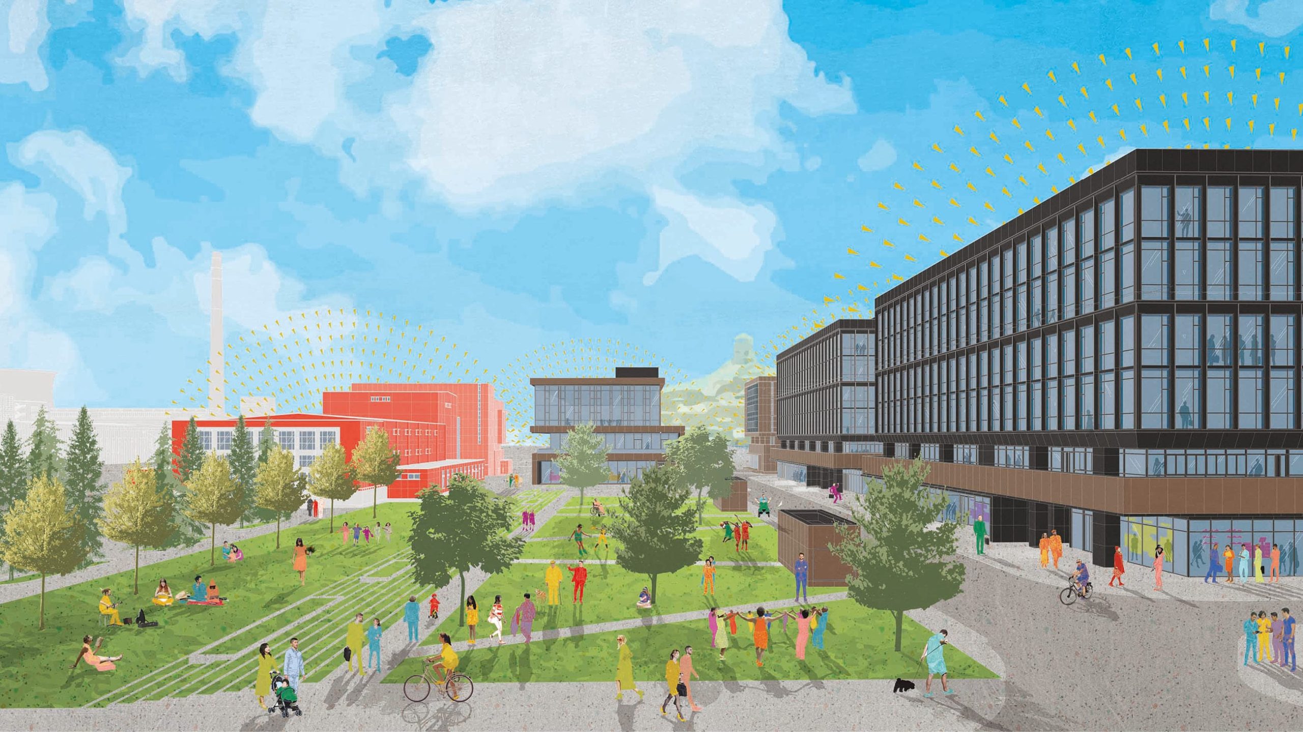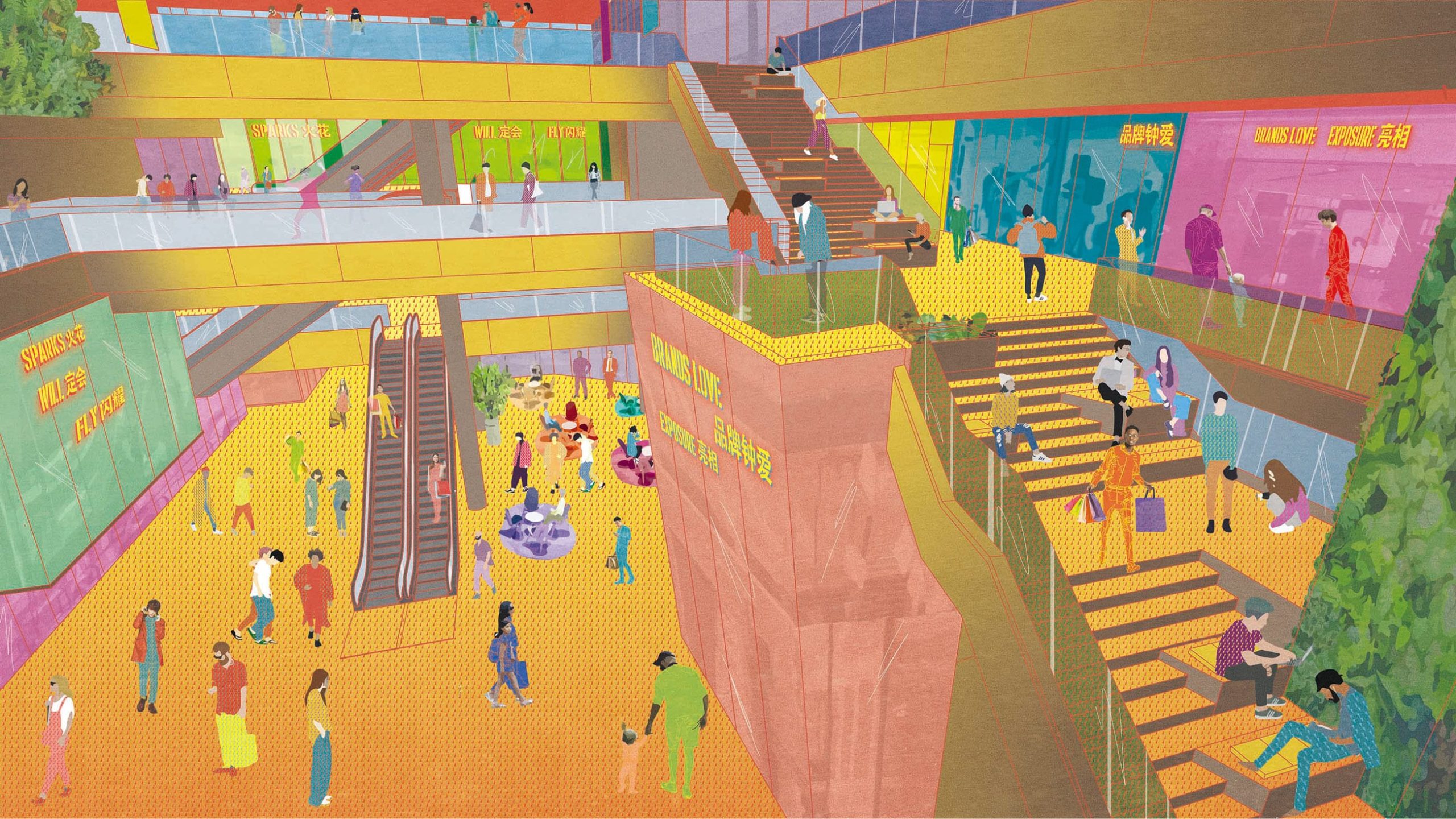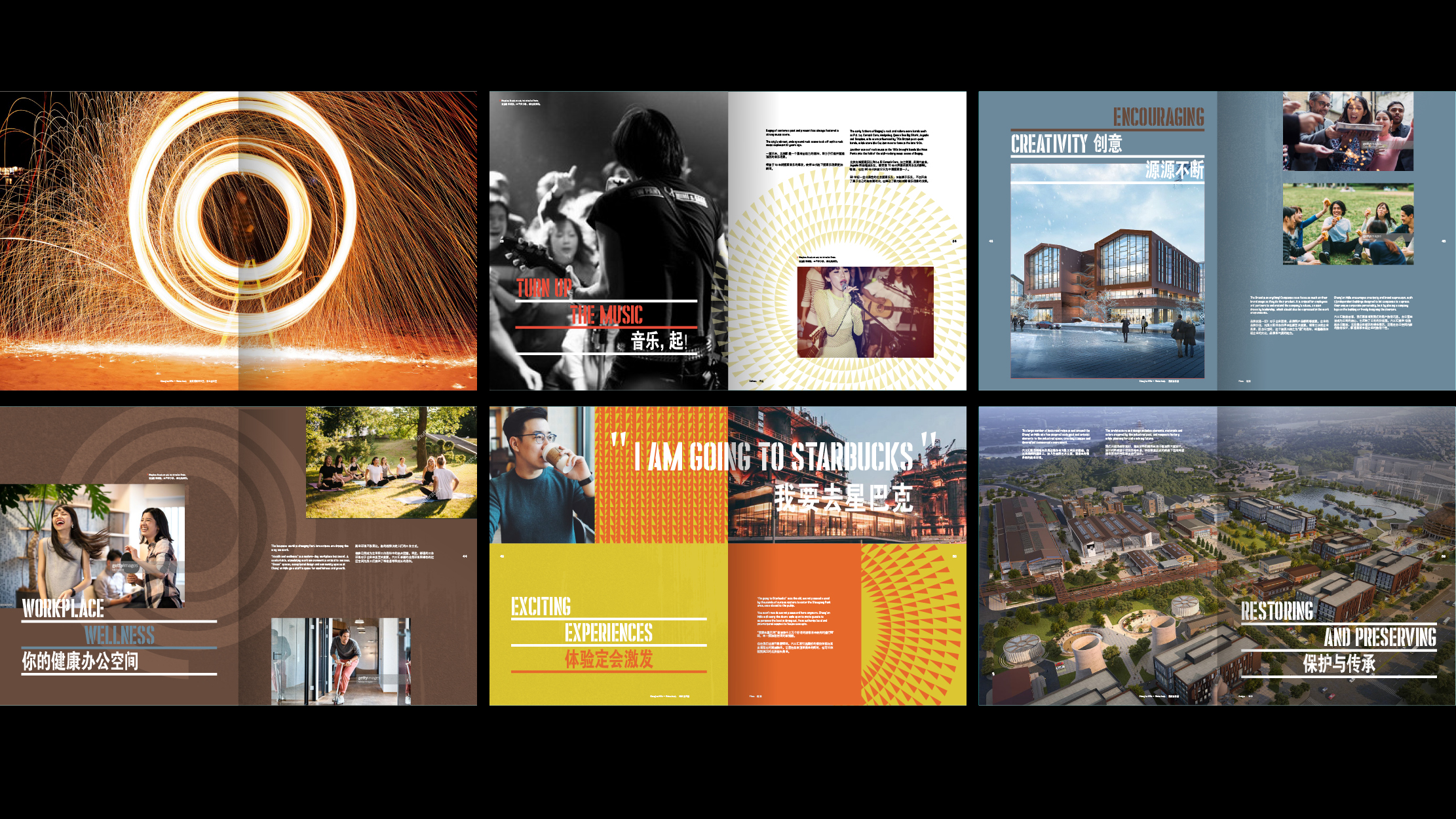 The impressive Big Air Shougang is located adjacent to the project and provides an exciting backdrop to the office spaces within the park. Drawing on the unique industrial heritage and project’s creative vision for the future of work and leisure in the capital, we developed a powerful place brand identity and a bold energetic suite of marketing collateral to place Chang’an Mills as a vibrant new landmark for the capital.