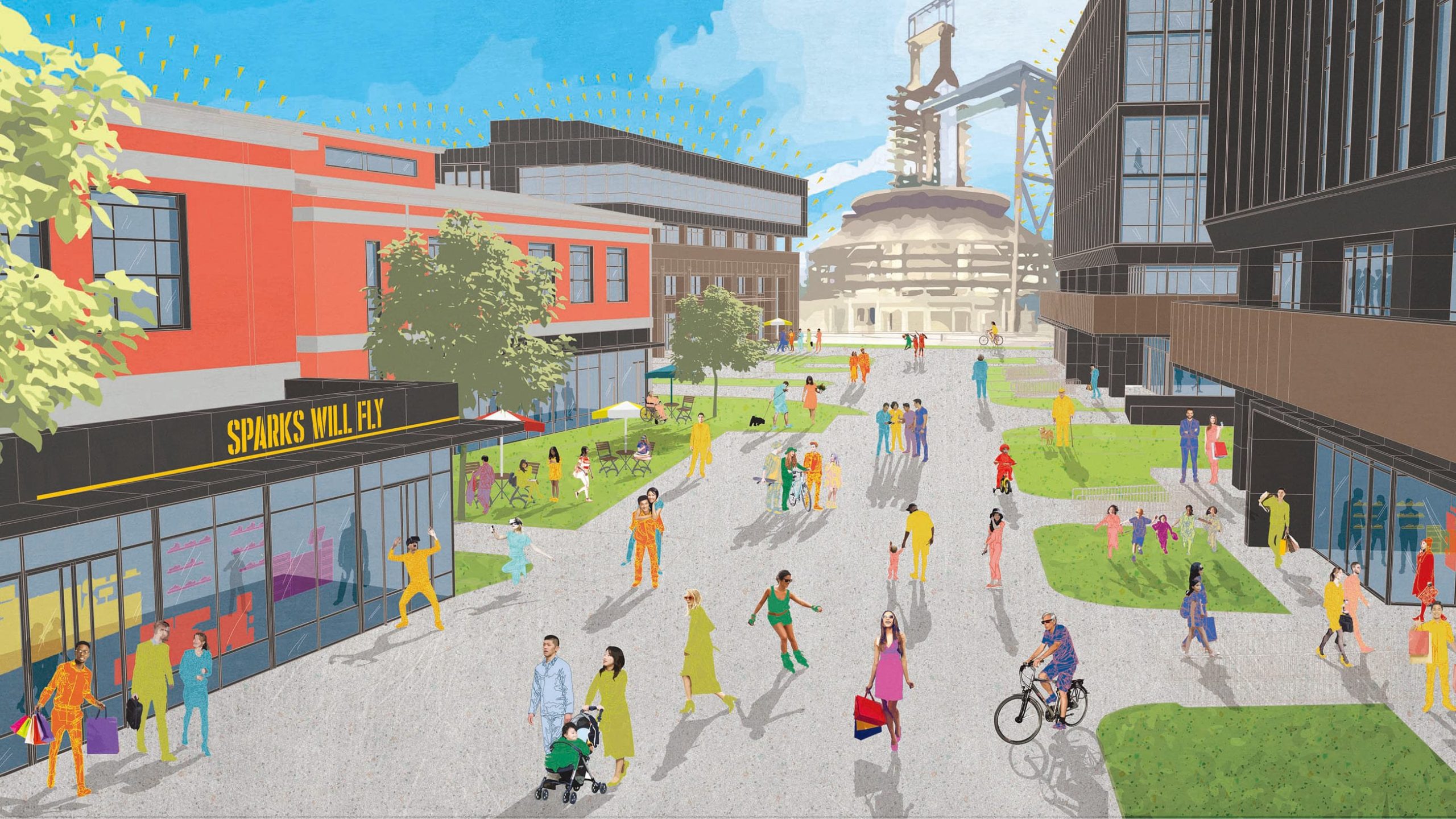 Taking inspiration from reclaimed industrial features on the site we created an identity system that is bold, modern and flexible. In line with the authentic, creative and proud spirit of the brand, we commissioned architectural and lifestyle illustrators to capture the distinctive character of the place and enrich a visual look like no other for the marketing materials.