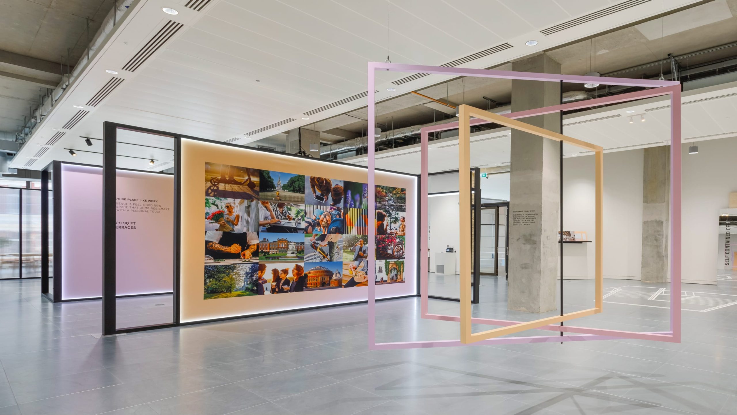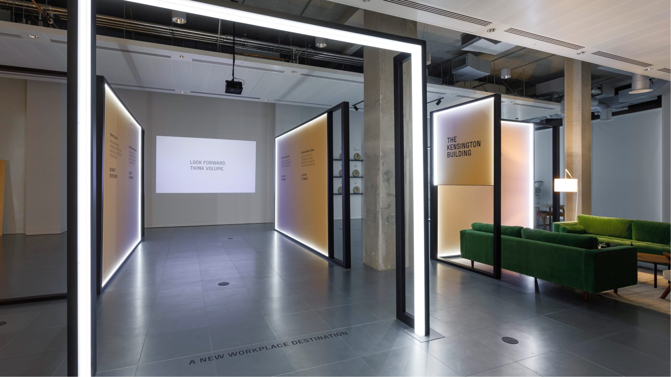 Formerly the site of Ponting’s department store, The Kensington Building retains the grand proportions of the original floor plates and ceiling heights to give the spaces light and volume rarely found in the new-builds of today. It was these volumous light spaces that directly inspired our design; the large, elongated scale of the windows (and the prisms of light spilling in), the amazing views, both into and out of the building (which also allows us to explore the unique location). These are expressed with the brand framing device and the iridescent gradients.
