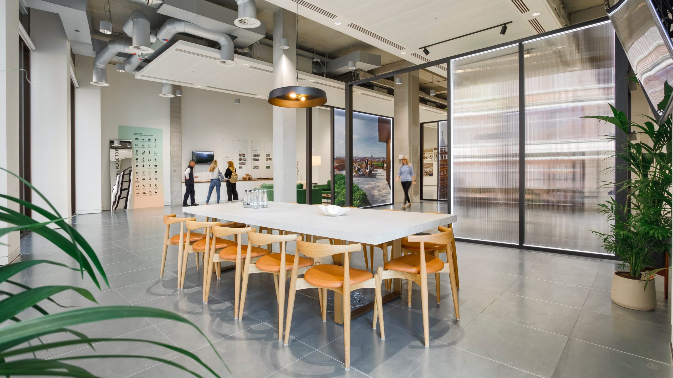 The building fuses contemporary design with a focus on high-quality and sustainable materials with timeless appeal.
